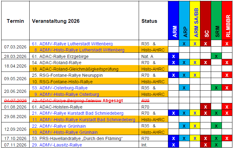 ADMV-Rallye-Pokal, dem ADMV-Histo-Rallye-Cup, der ADMV-Rallye-Meisterschaft Sachsen-Anhalt/Berlin-Sachsen-Anhalt, zur Rallye-Meisterschaft Sachsen-Anhalt, und Rallye Landesmeisterschaft Berlin-Brandenburg.